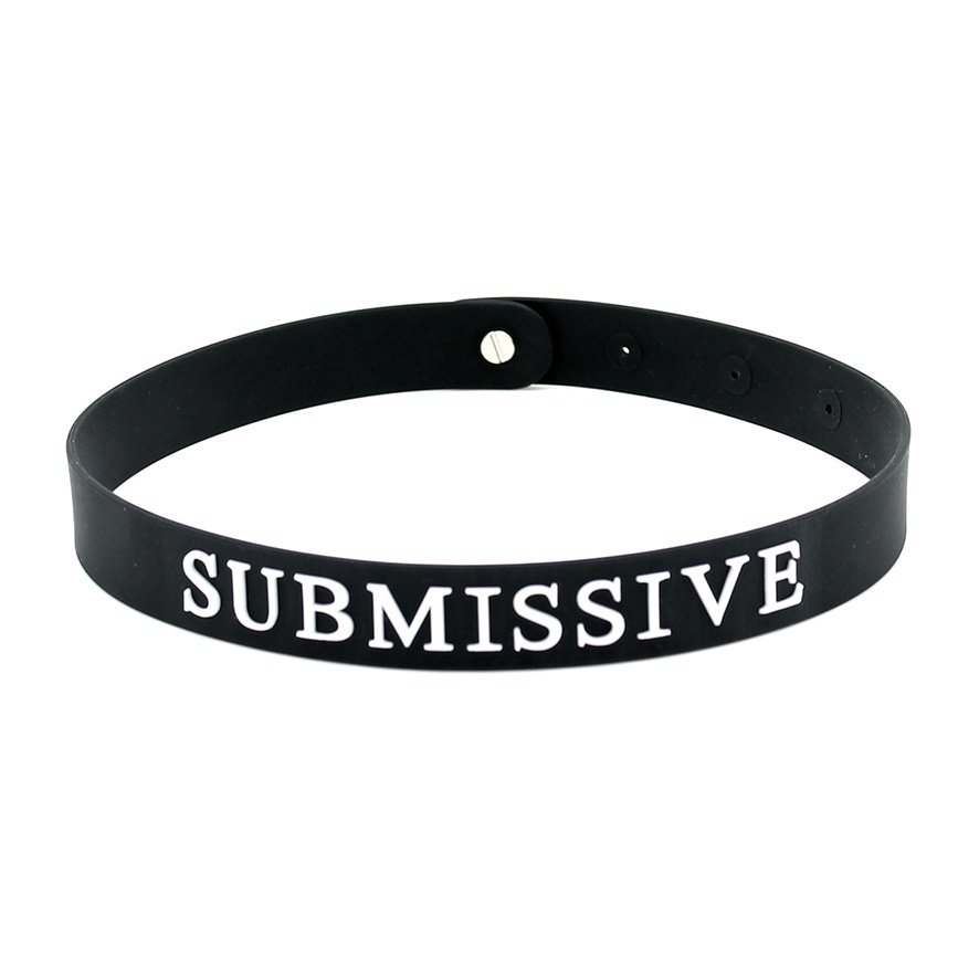 The word SUBMISSIVE is wrote on the front of the collor in white letters.
