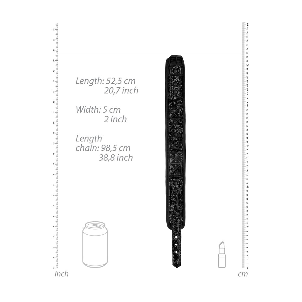 The robust black chain attaches with a lobster clasp to the secured O ring on the collar and combines with a comfortable handle.