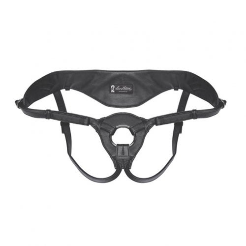 Get deep with the Lux Fetish Patent Leather Strap on Harness. This sexy, supple leather harness can accommodate any dildo with a flared base, and includes 2 rubber holder rings.